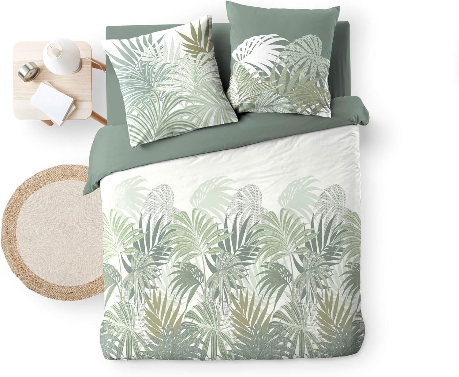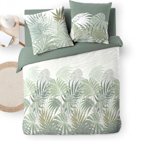 Parure Housse de couette 3 Pièces 240 x 220 cm Nymea vert Palmier 100% Coton