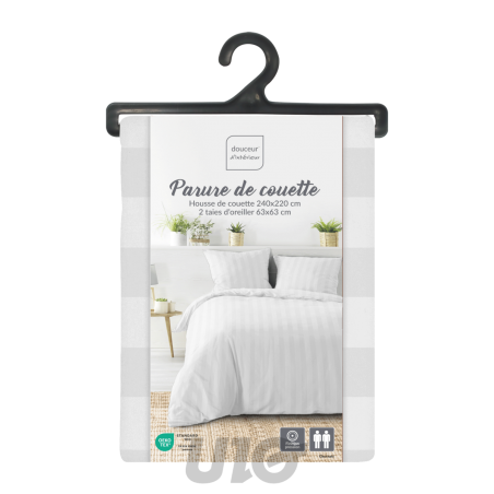 Parure Housse de Couette 240x220 Cm et ses 2 taies d'oreiller 63x63 cm Douceur d'Intérieur Thème : Cleo Blanc Composition : 100 % Microfibre Polyester Toucher Doux