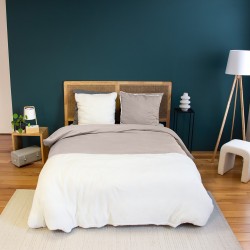 PARURE DE LIT UNIE comprenant : 1 housse de couette 240 x 220 cm + 2 taies d'oreiller 63x63 cm Uni Beige Recto et verso.