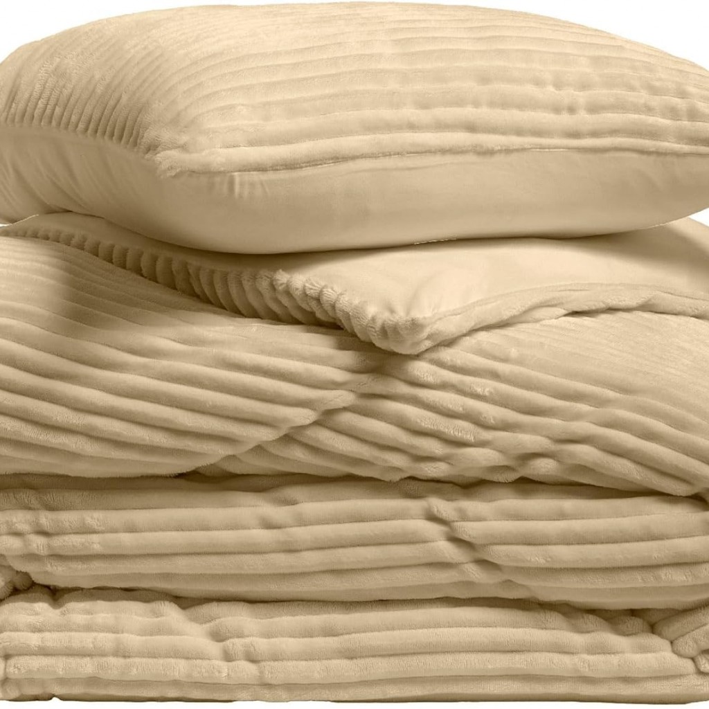 Parure Housse de Couette 240x220 cm Veloutea Sable toucher Flanelle