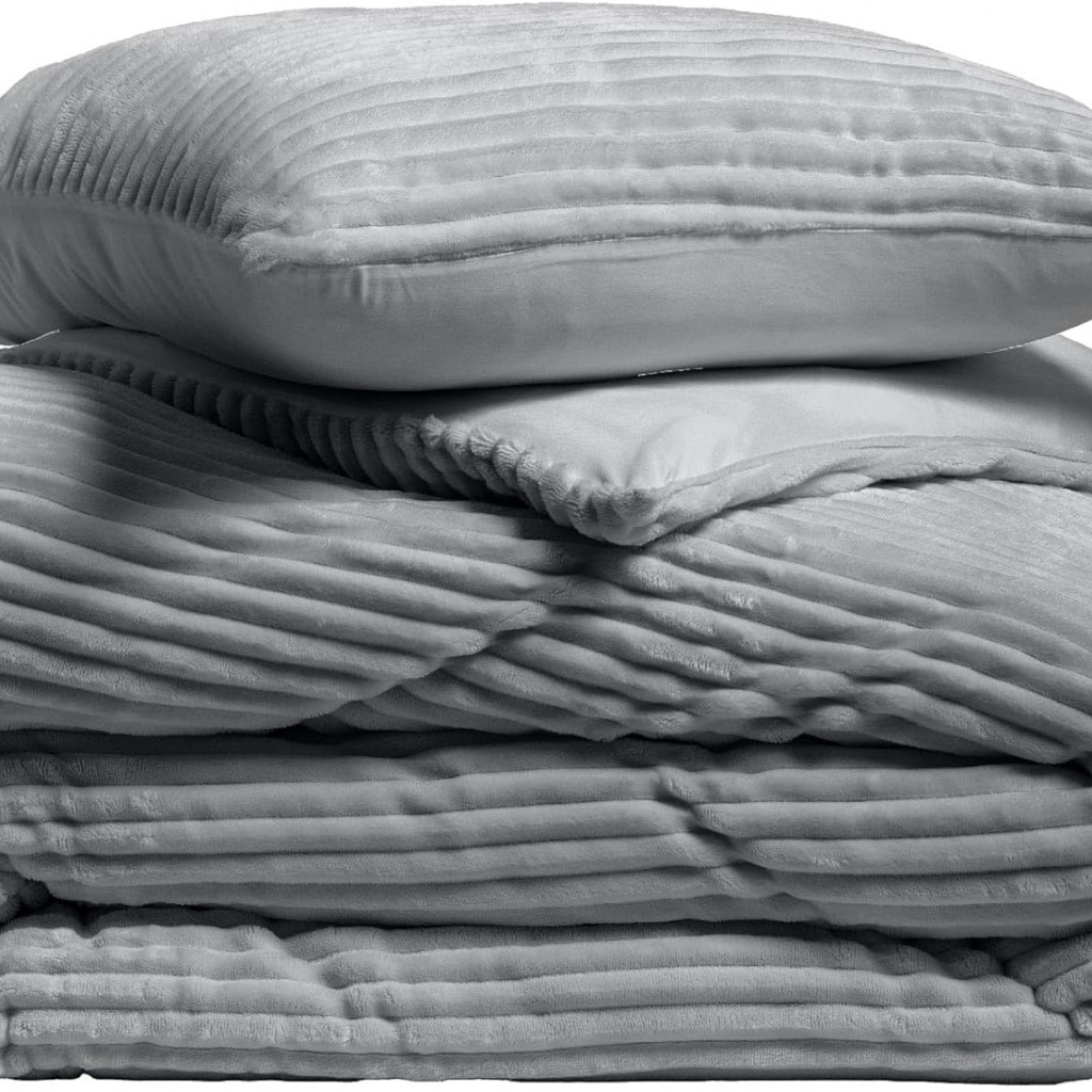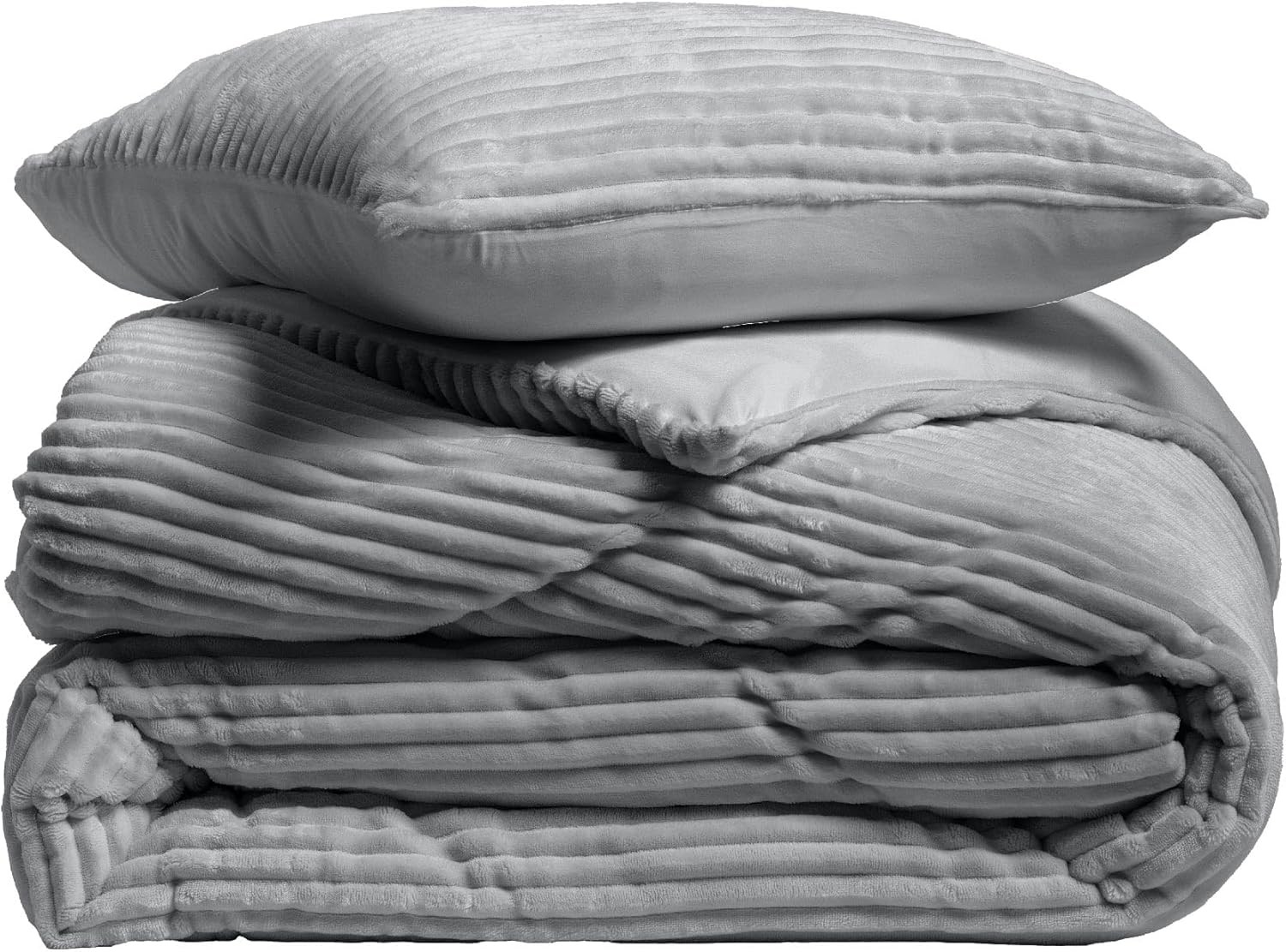 Parure Housse de Couette 240x220 cm Veloutea Anthracite toucher Flanelle