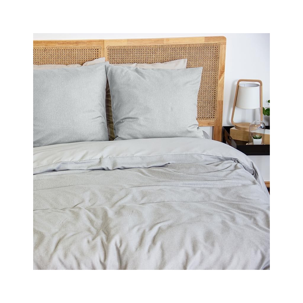Parure Housse de Couette 240x220 Cm Polyester Sensation Flanelle Gris Cendré