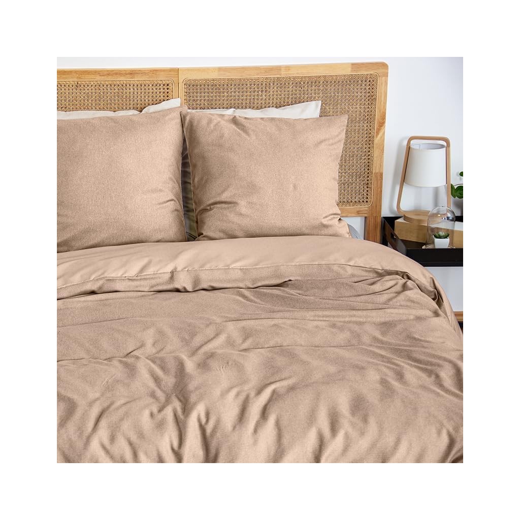 Parure Housse de Couette 240x220 Cm Polyester Sensation Flanelle Grège