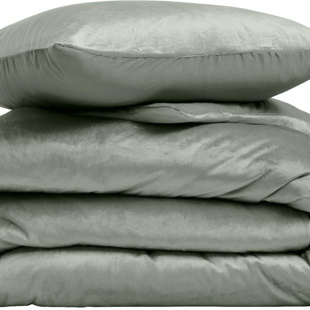 Parure Housse de Couette 240x220 Cm Douceur d'Intérieur Velina Velours Vert Cèdre