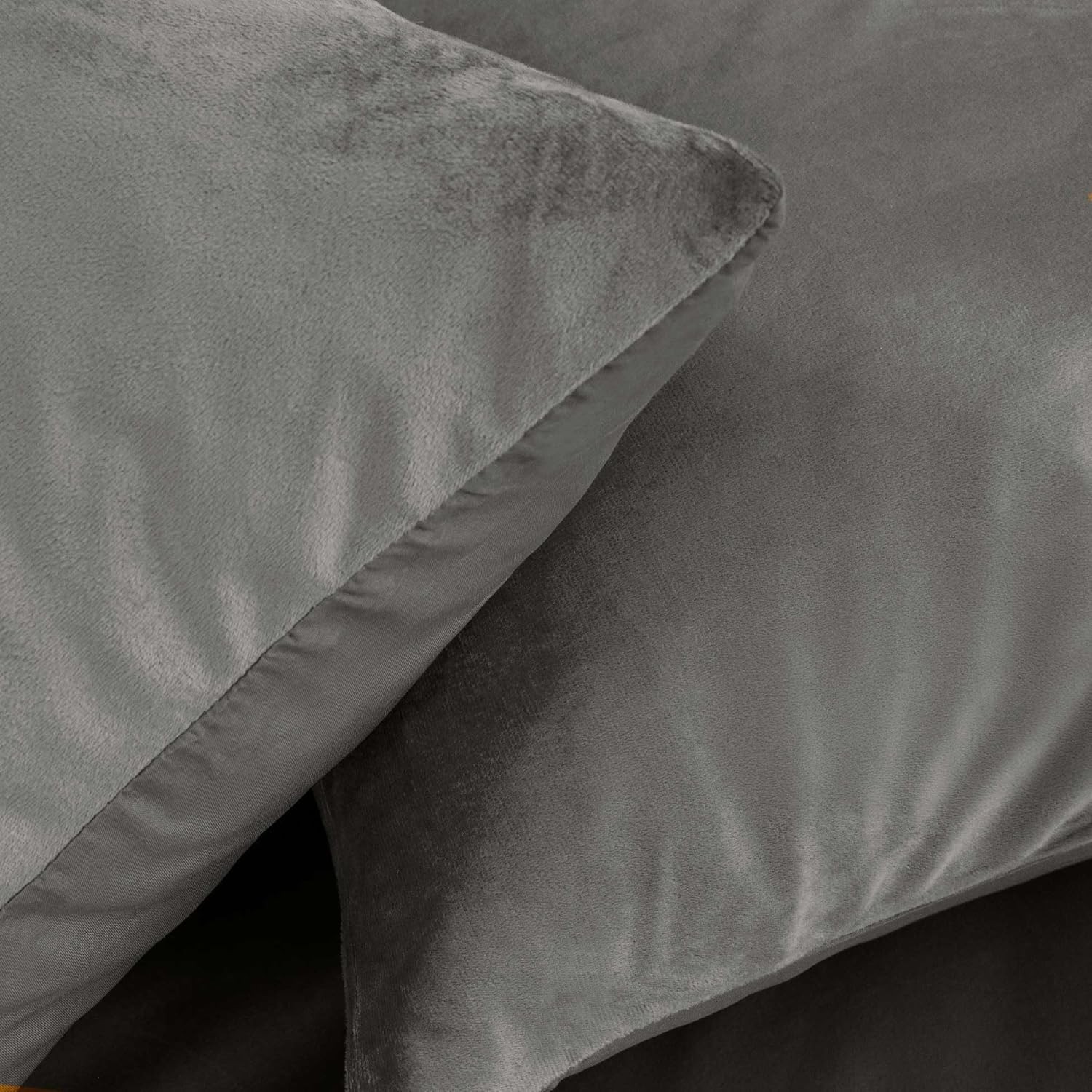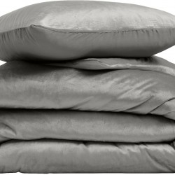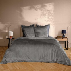 Parure Housse de Couette 240x220 Cm Douceur d'Intérieur Velina Velours Gris Anthracite