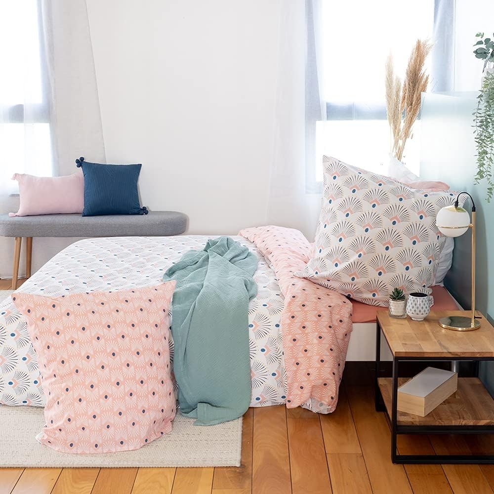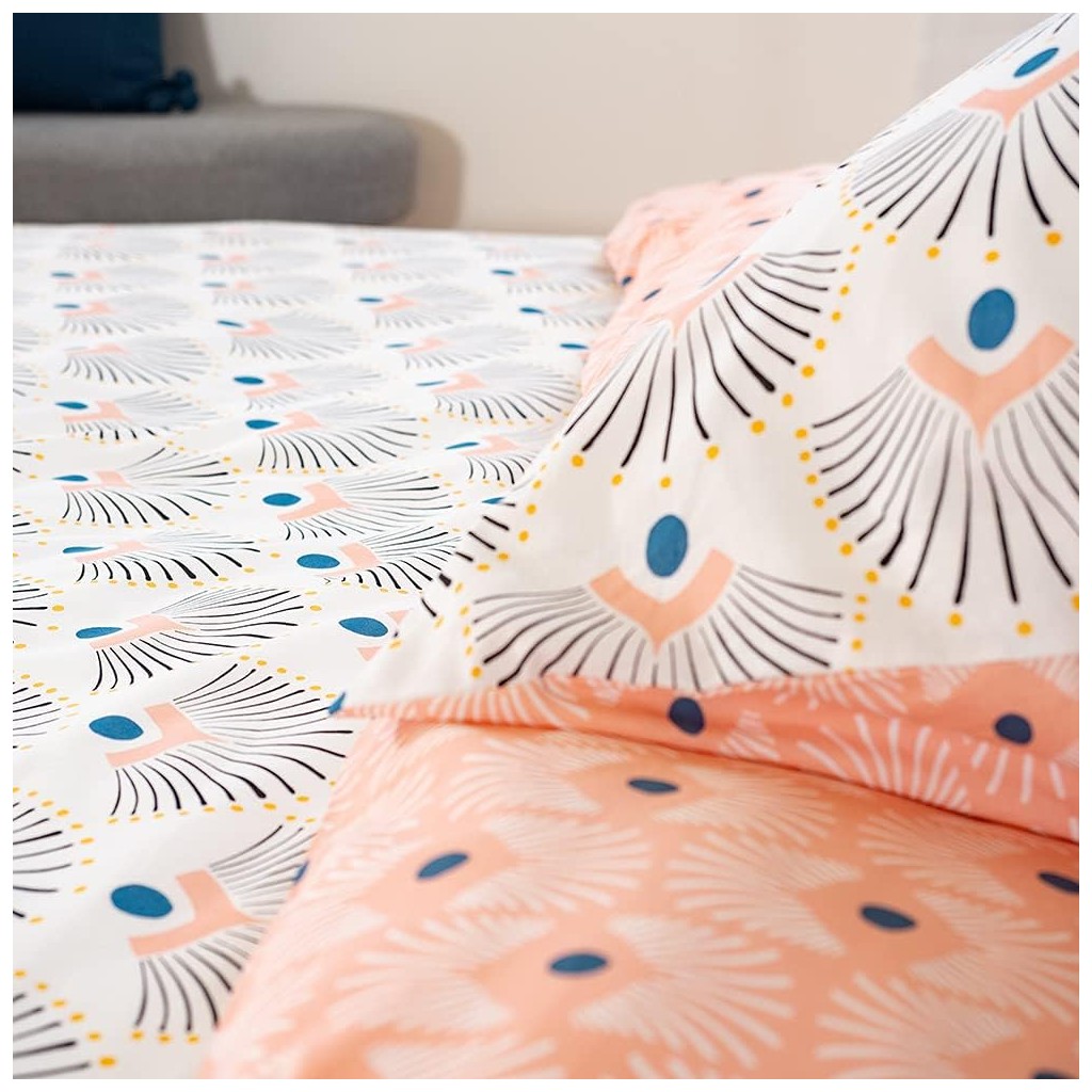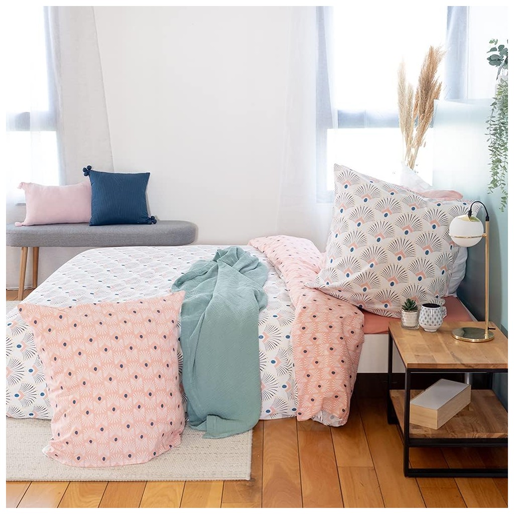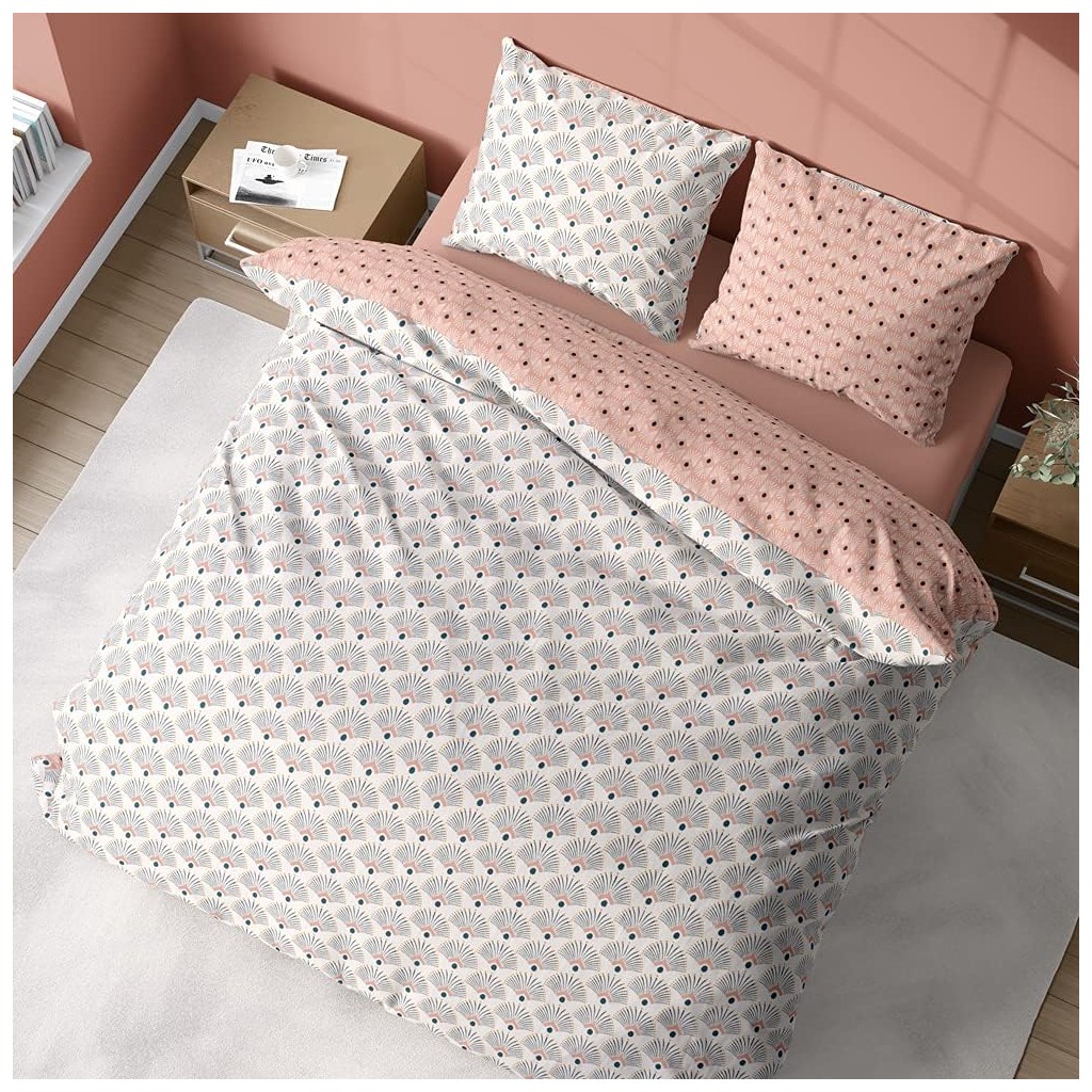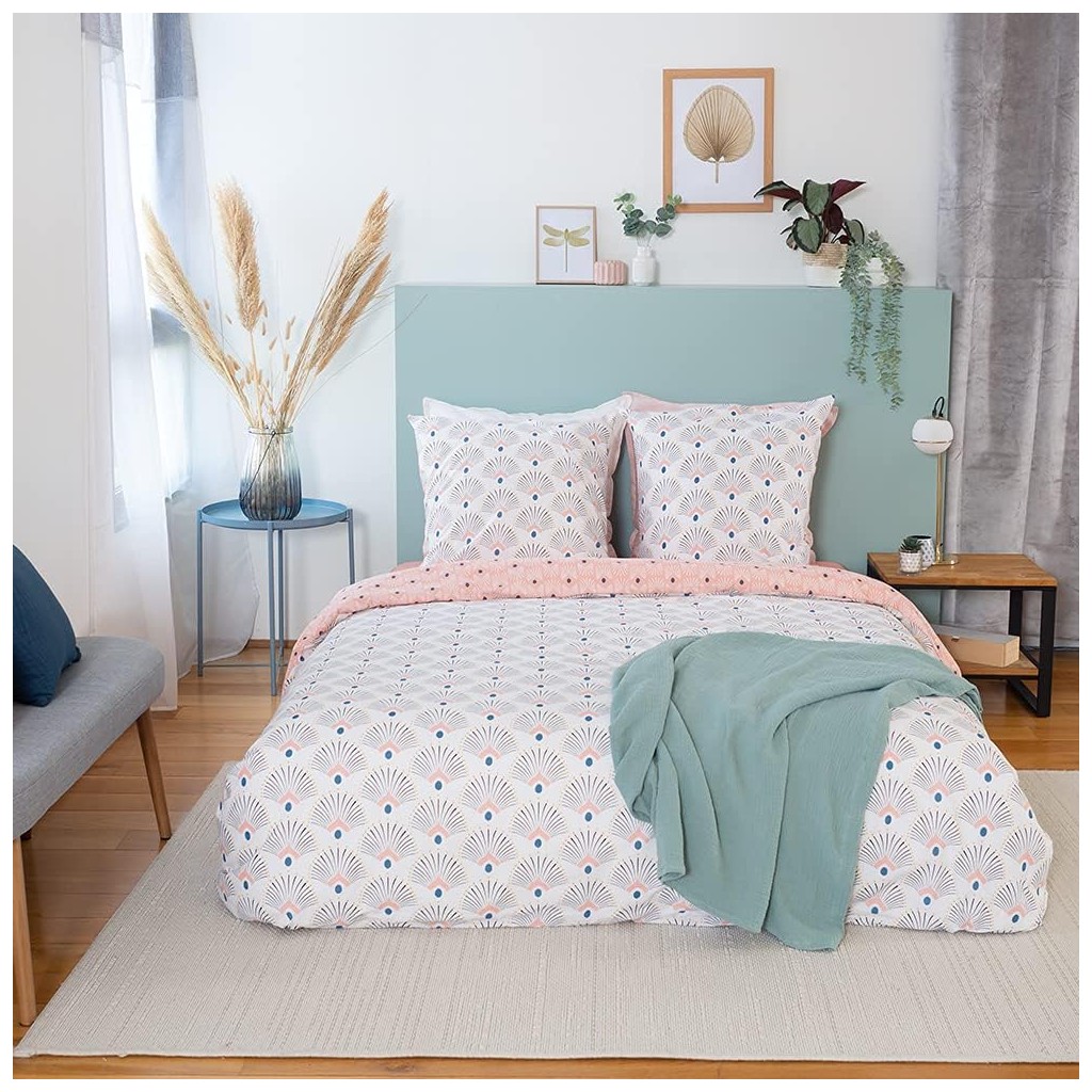Parure de lit géométrique réversible rose pour un lit standard 2 personnes comprenant